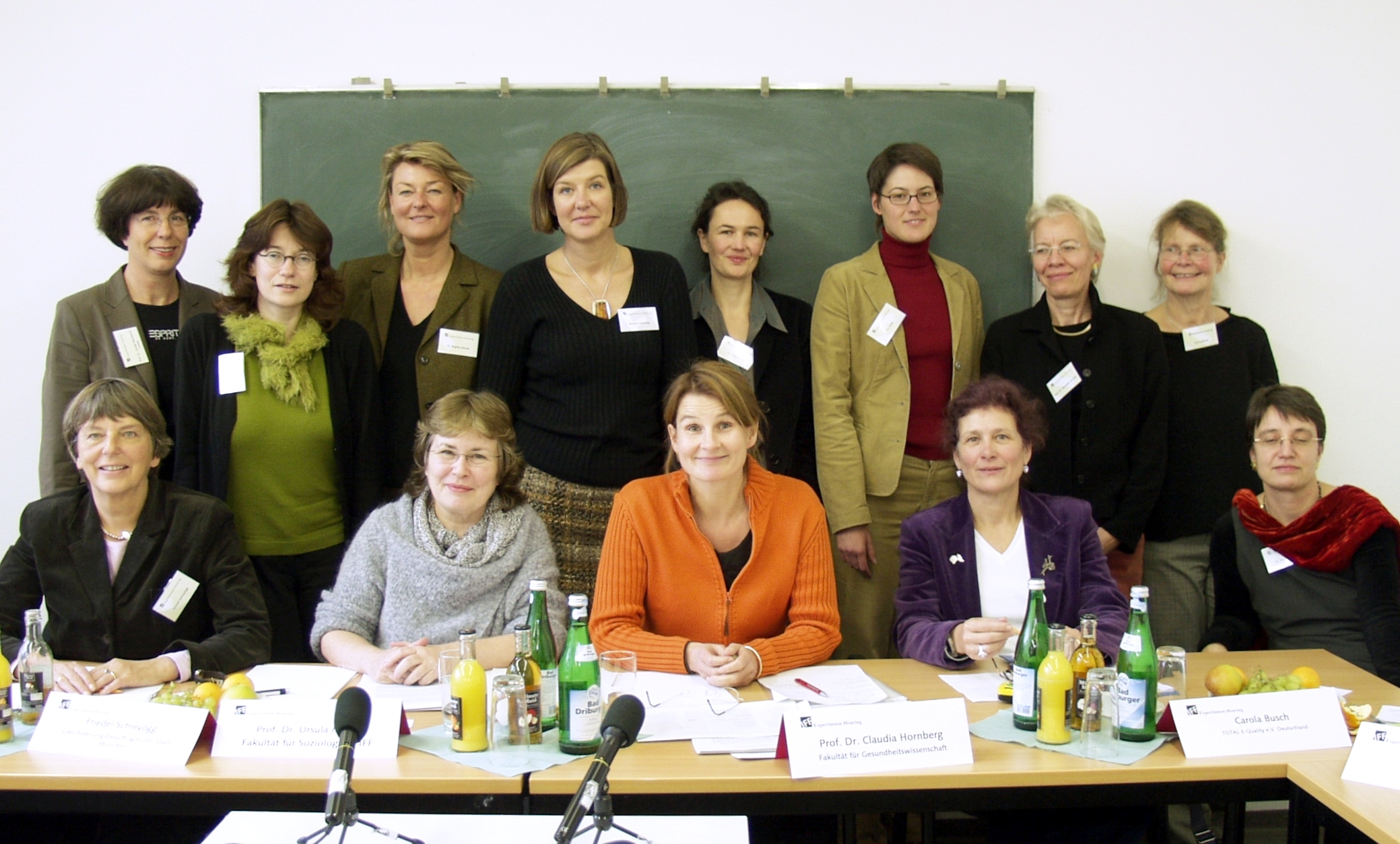 Buz 218/2004 - Expertinnen-Hearing "Gender Studies - Arbeitsmarktperspektiven und Studiengangskonzepte" (v.l.): in der hinteren Reihe Christa Kleindienst-Cachay (Abteilung Sportwissenschaft), Monika Hünert (Bundeszentrale für gesundheitliche Aufklärung), Birgitta Wrede (IFF), Barbara Haeming (Deutsche Gesellschaft für Technische Zusammenarbeit), Regina Frey (Gender-Büro Berlin), Pia Zufall (Deutscher Sportbund), Mechtild Oechsle (IFF, Fakultät für Soziologie), Ulla Reißland (IFF), in der vorderen Reihe (v.l.) Friedel Schreyögg (Gleichstellungsbeauftragte der Stadt München), Ursula Müller (IFF, Fakultät für Soziologie), Claudia Hornberg (IFF, Fakultät für Gesundheitswissenschaften), Carola Busch (Total E-Qualitity e.V.) und Birgit Riegraf (Fakultät für Soziologie).