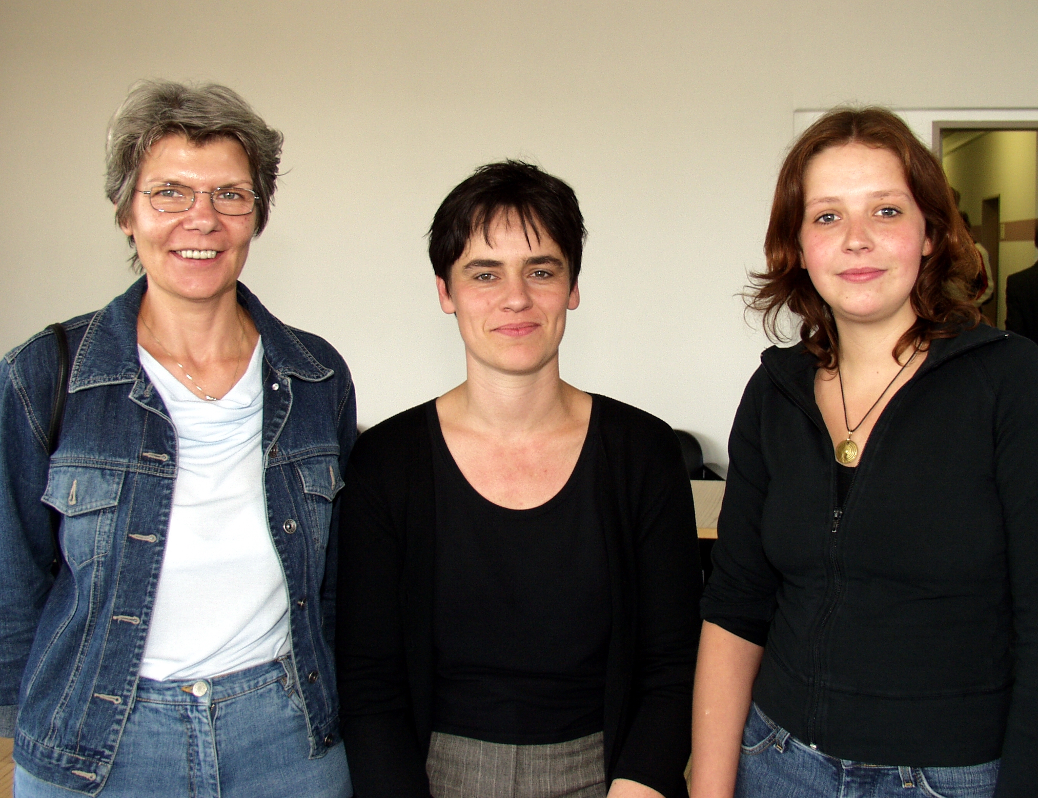 Bild: Buz 218/2004 - Die Vorsitzende des Fördervereins Frauenstudien Irmi Heitfeld (rechts) im Gespräch mit den Absolventinnen Anne Vollmer (links) und Ingrid LangerBildnummer: 26210