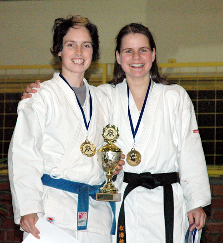 Bild: Sowohl in den Einzelwettbewerben als auch im Team konnten Annika Kläs (links im Bild) und Silvia Hagen von der Universität Bielefeld bei den Deutschen Karate-Hochschulmeisterschaften  den Titel für sich gewinnen. Bildnummer: 24923