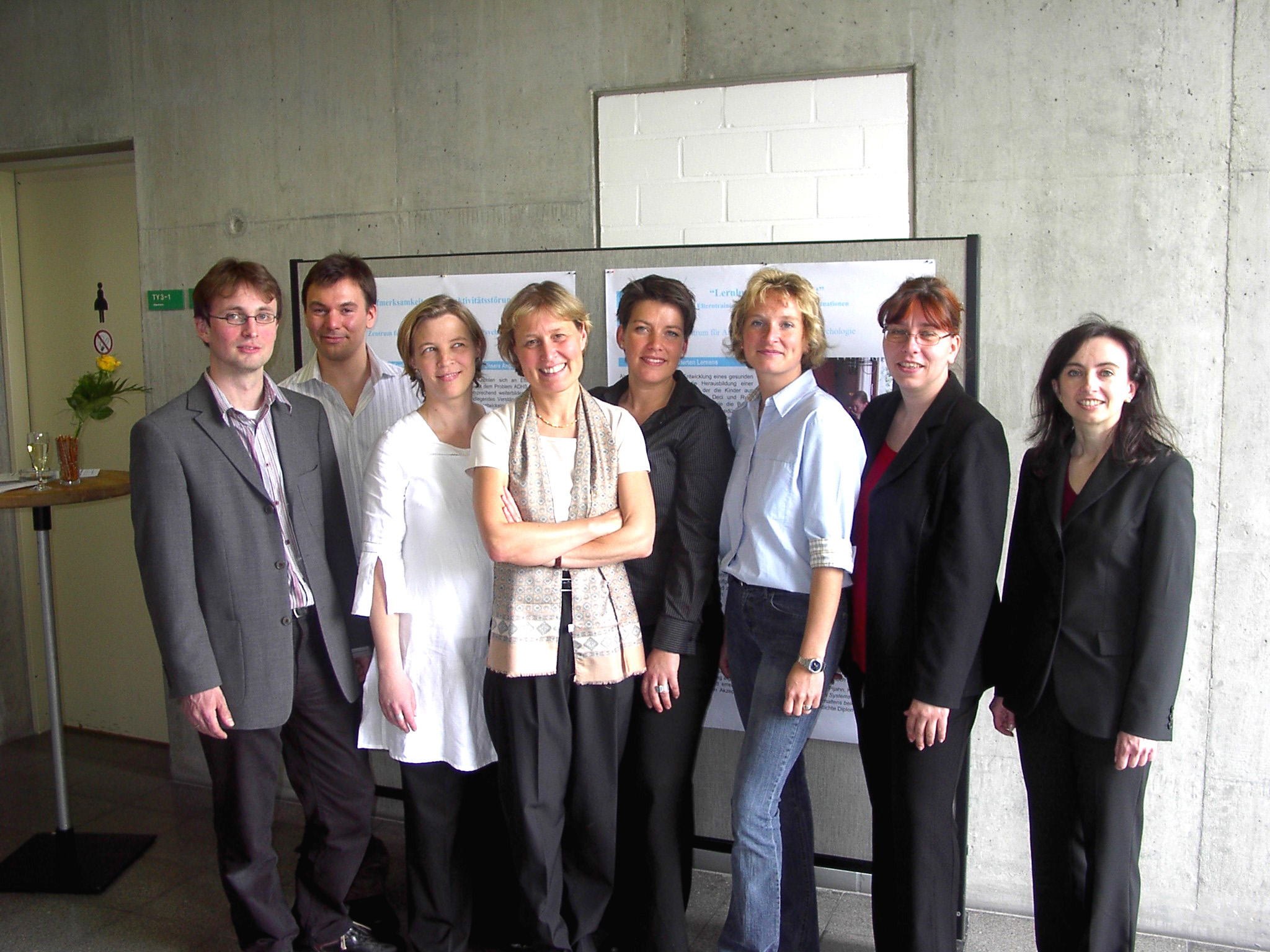 Buz 217/2004 - ZAPP-Gründer (von links): Thomas Rottmann, Martin Knollmann, Monika Rammert, Elke Wild, Katharina Weber-Pijahn, Christine Wittler, Katrin Upmann und Anita Siegmund. Foto: Kartini Diapari/NW.