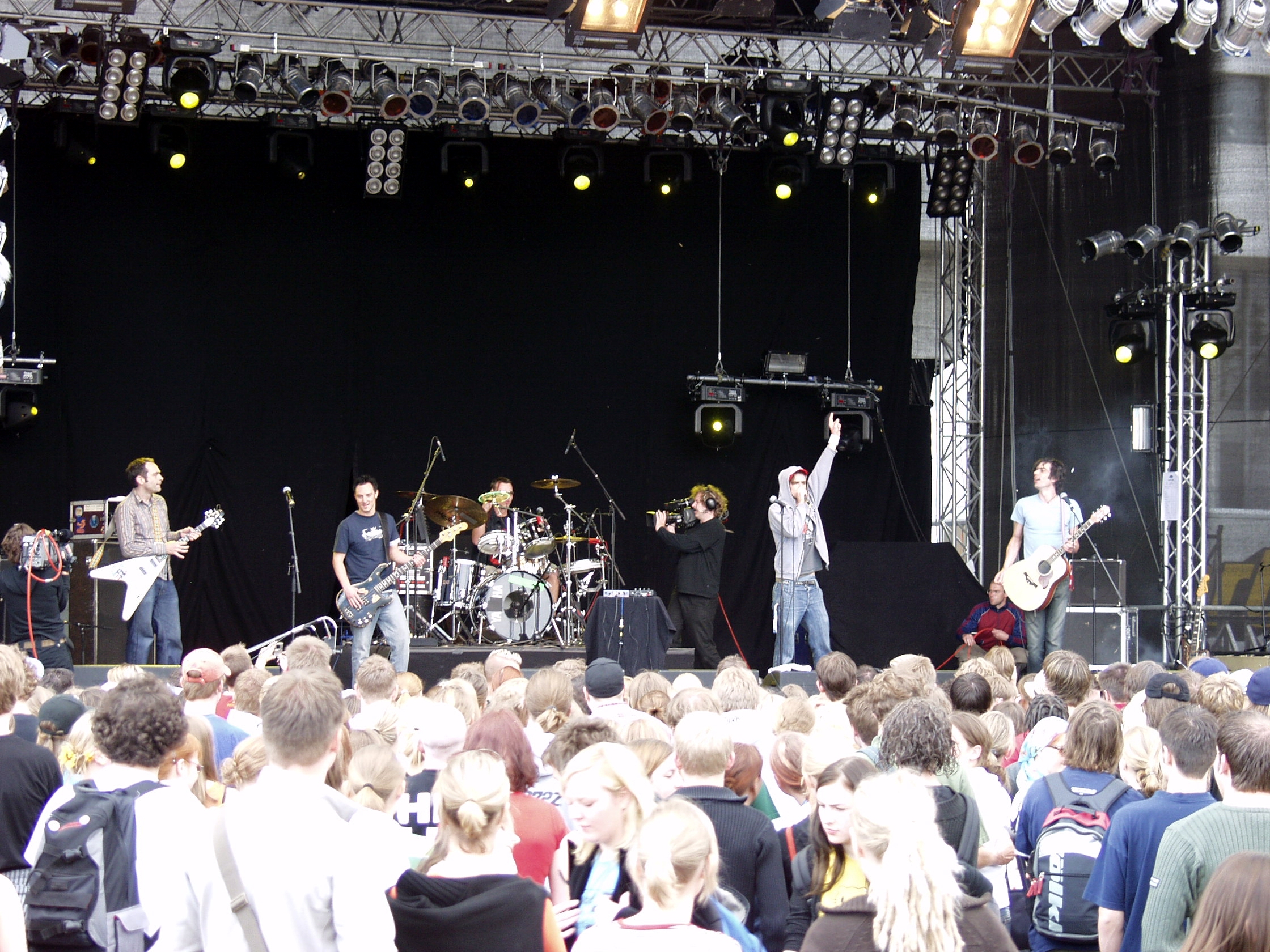 Buz 217/2004 - Der Regen konnte die Laune der 10 000 Zuhörer nicht ganz verderben. Als die Sonne mit den Berliner Beatsteaks aufging, zeigte sich das Bielefelder Publikum in gewohnter Festival-Stimmung. Foto: Claus Willemer.