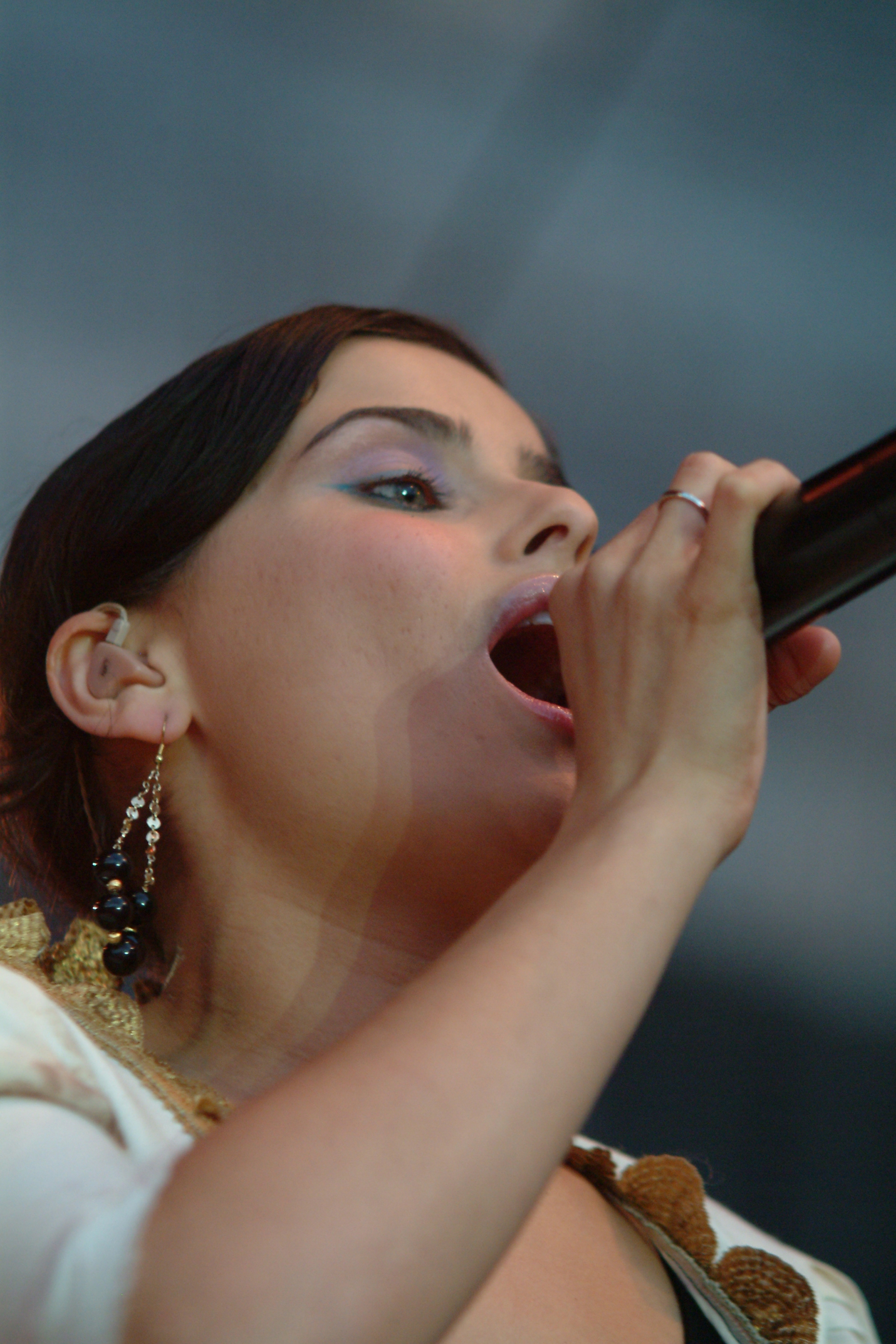 Buz 217/2004Weltstar Nelly Furtado trat zum ersten Mal in Deutschland auf. Riesenkomplimente machte sie der Stadt Bielefeld und beantwortete die Frage, ob sie sich vorstellen könne, an der Universität Bielefeld zu studieren, höflich mit "Ja". Foto: Claus Willemer.