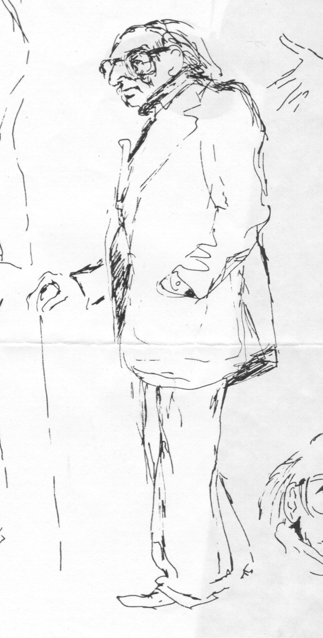 Buz 215/2003: Theodor Schulze zeichnete Elias während des Vortrags "Conditio humana: Beobachtungen über die Entwicklung der Menschheit", 8. Mai 1985.