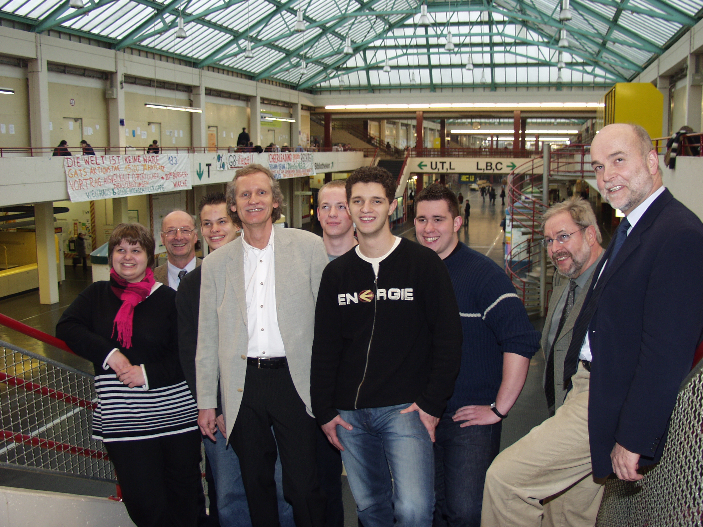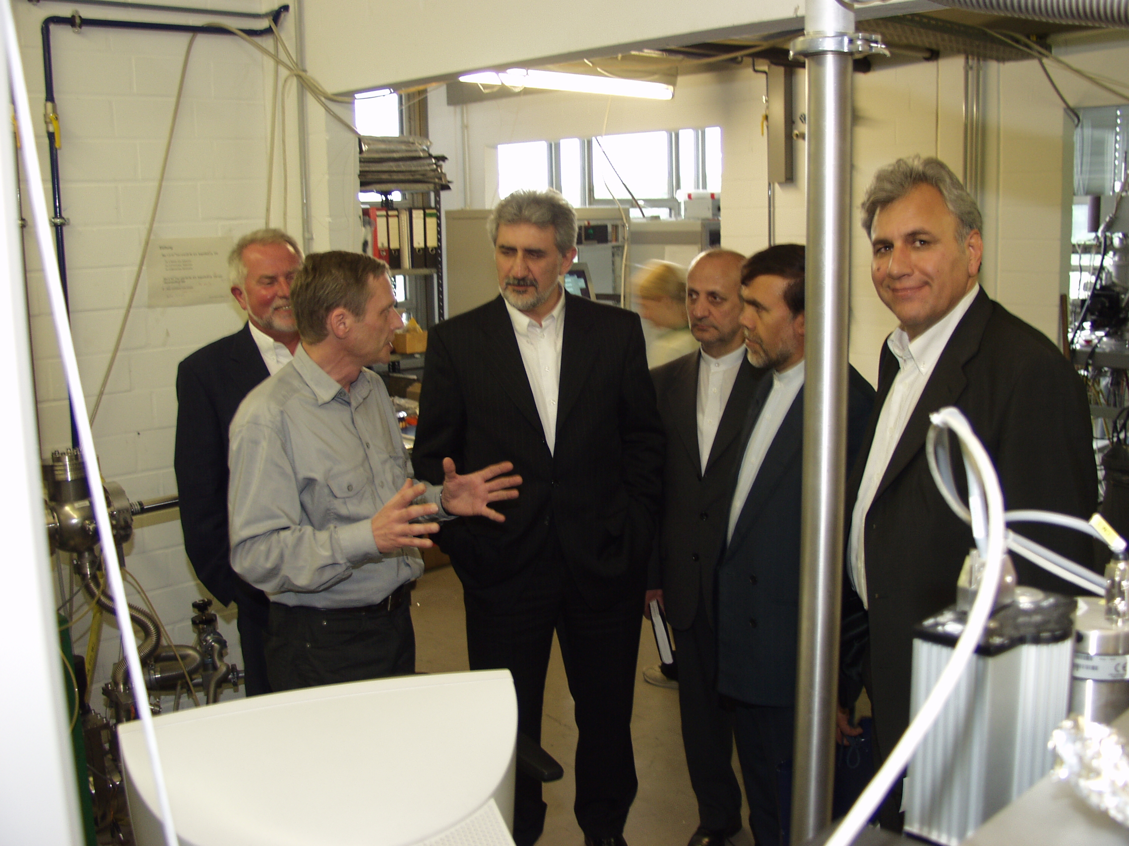 Iran-Delegation. Das Foto zeigt von links: Burckhard Kaddatz, Physik-Professor Günther Reiss, Hossein Nasiri, Mahmoud Halimi, Dr. Ali Khorram und Alireza Rohani. BUZ 214/2003