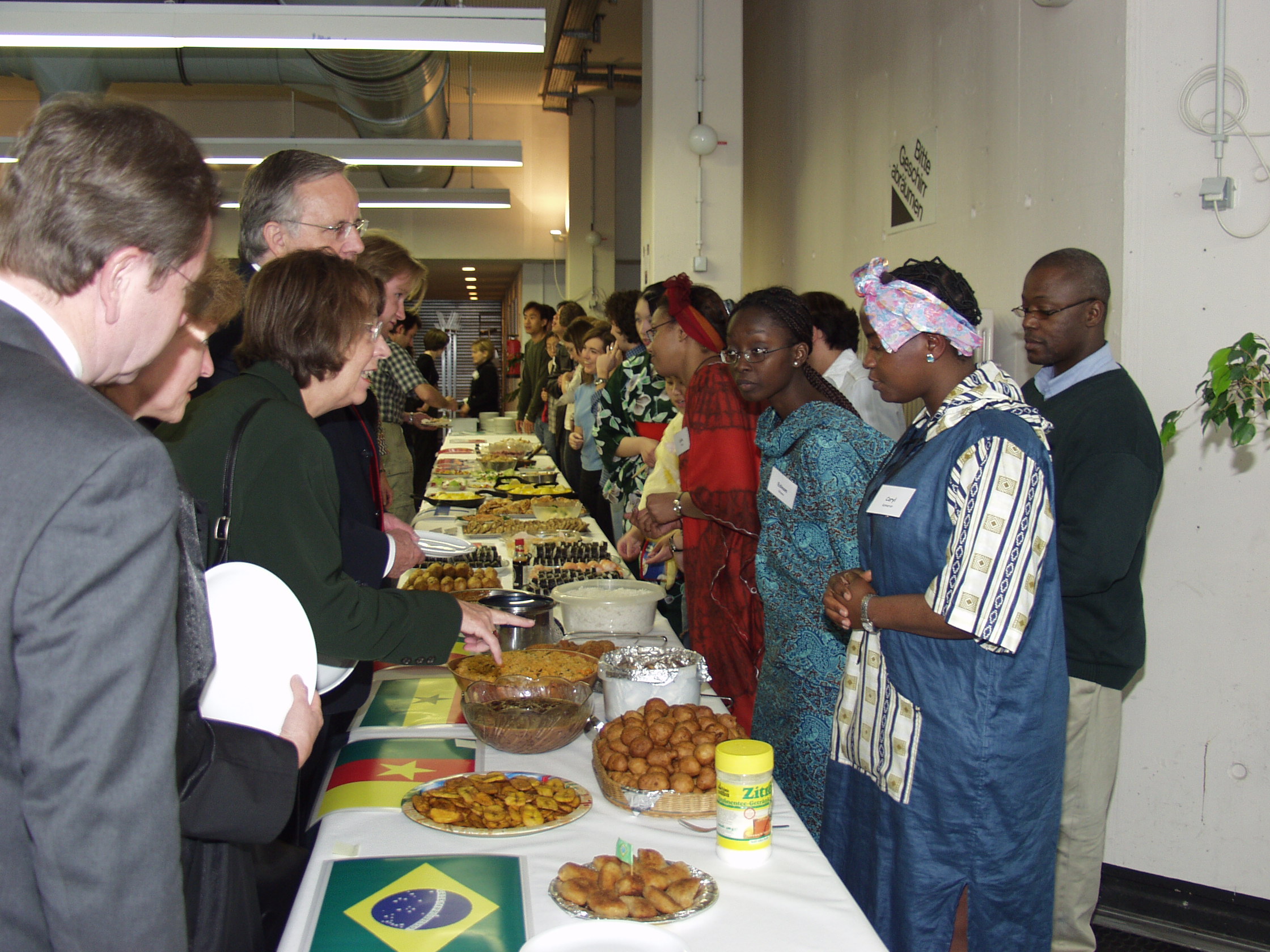 Jahresempfang 23. Mai 2003. Ausländische Studierende haben nach Rezepten ihrer Heimatländer spezielle Speisen zubereitet.