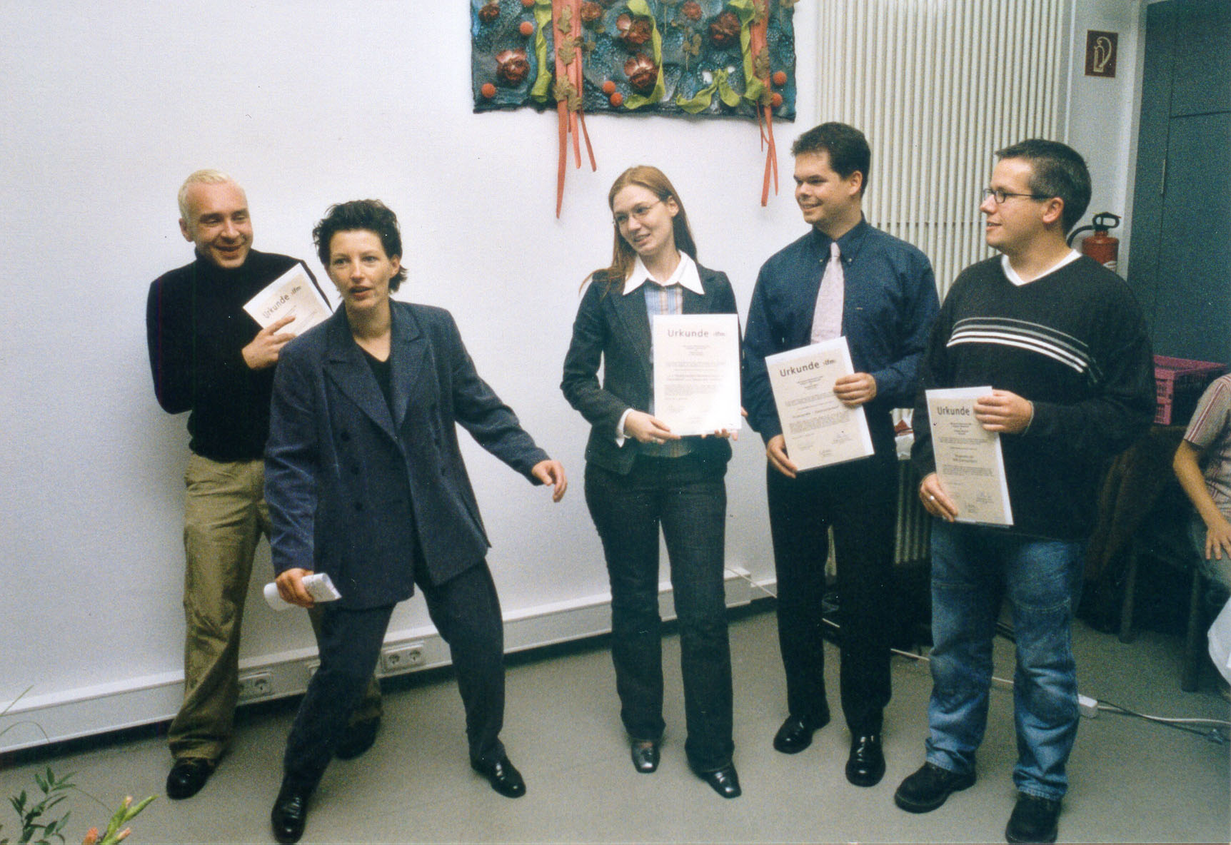 Bild: Die Landesanstalt für Medien Nordrhein-Westfalen zeichnete erstmals studentische Radioproduktionen aus. Das Foto zeigt von links: Christian Schulte (Hertz 87Bildnummer: 10950