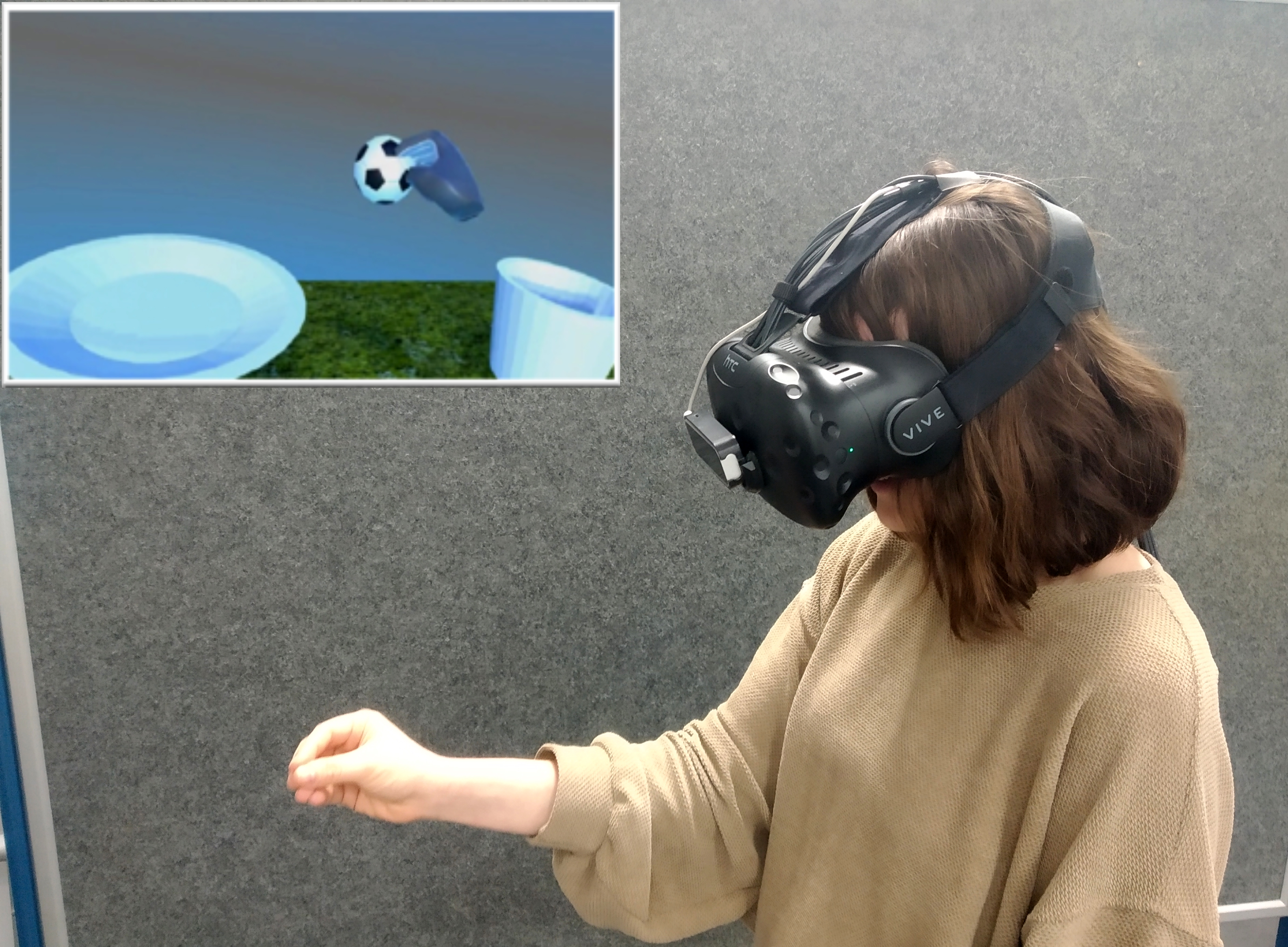 Mit einer Virtual-Reality-Brille üben die Patient*innen zum Beispiel das Greifen. Foto: Universität Bielefeld