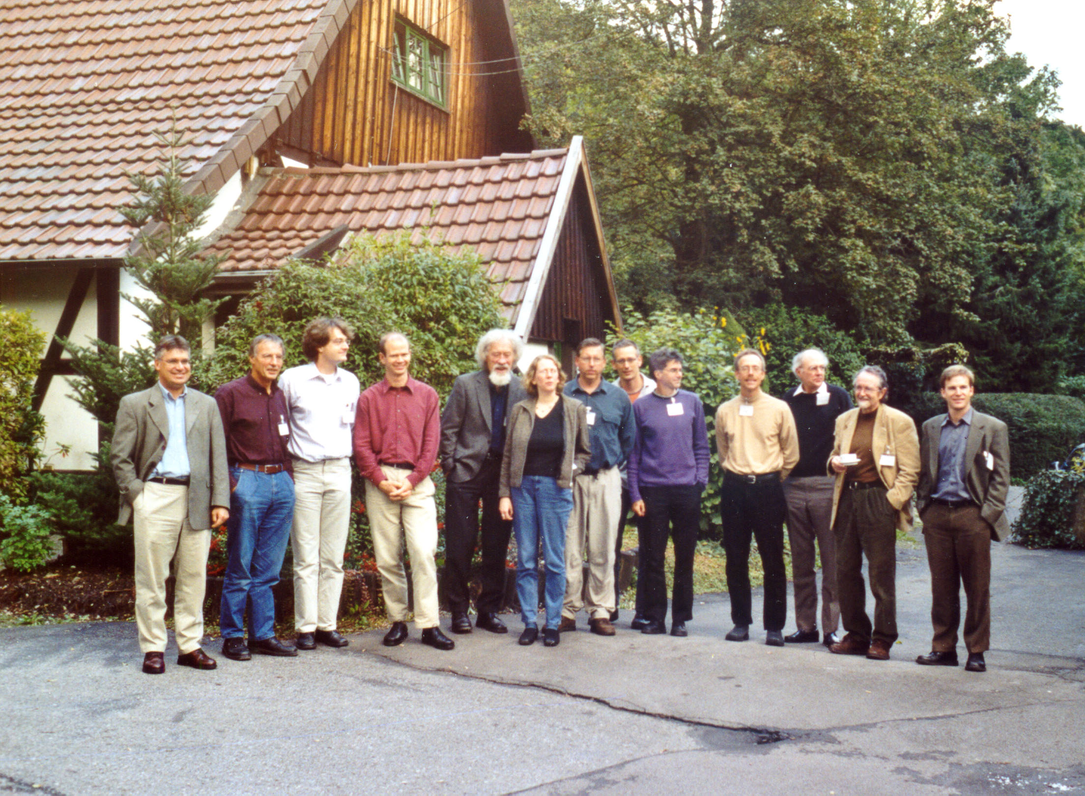 Teilnehmer des Bielefelder Workshops "Socially Robust Ecological Design" (von links): Ross E. Mitchell (Edmonton, Kanada), Wolfgang Krohn (Bielefeld), Matthias Groß (Bielefeld), Holger Hoffmann-Riem (Bielefeld), Wolfgang van den Daele (Berlin), Liz Sharp (Bradford, Großbritannien), Robert Frodeman (Boulder, Colorado, USA), Christian Pohl (Zürich), Jeppe Læssøe (Roskilde, Dänemark), Paul H. Gobster (Chicago, USA), William R. Jordan III (Evanston, Illinois, USA), Frederick Turner (Texas, Dallas, USA), David P. Robertson (Lynchburg, Virginia, USA).