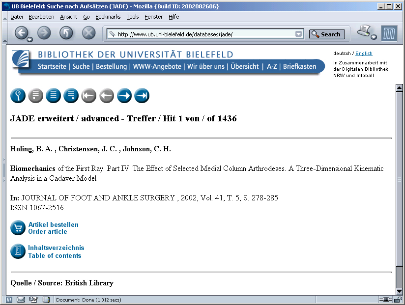 Bild: Univeristäts Bibliothek Jade-ZeitschriftenkatalogBildnummer: 10803