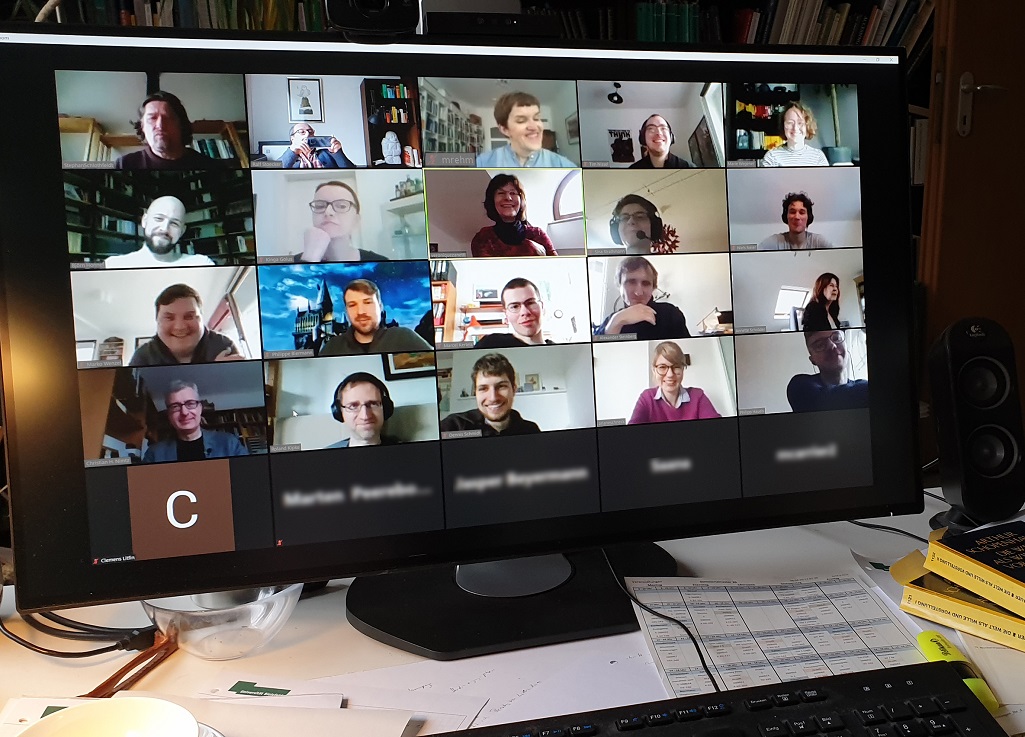 Prof. Ralf Stoecker (Abteilung Philosophie) bespricht sich mit seinen Kolleg*innen in einer Videokonferenz.