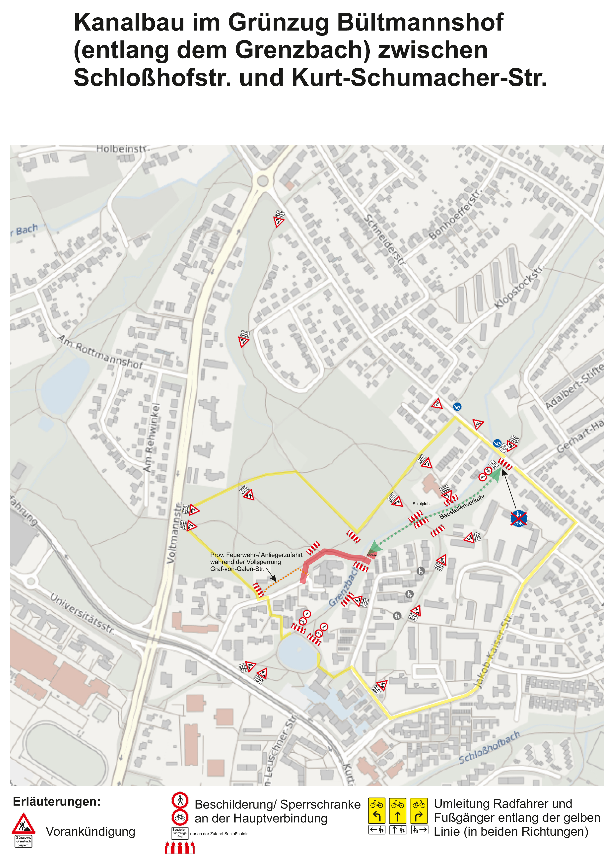 Plan Kanalbauarbeiten im Grünzug Bültmannshof.
