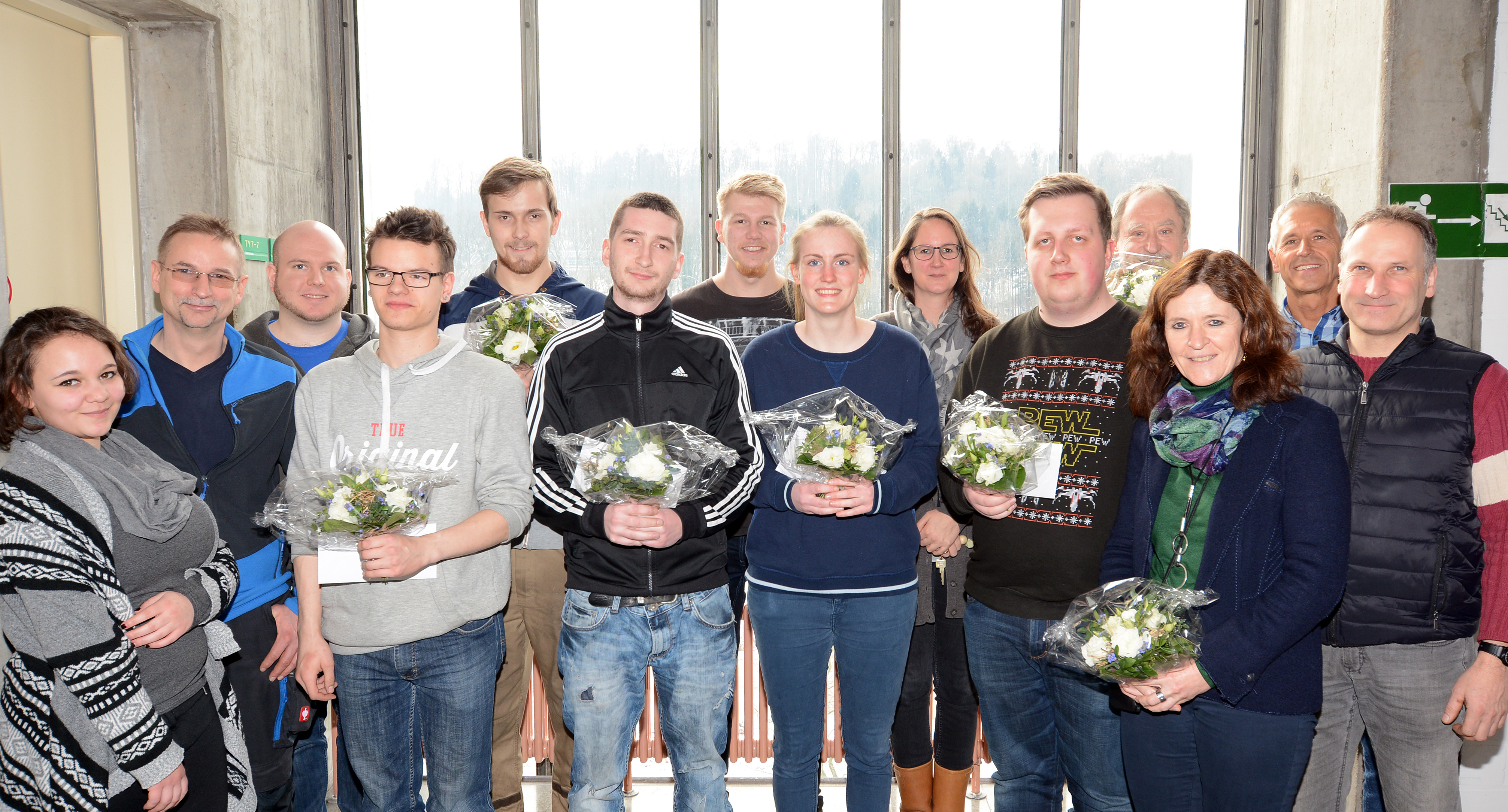 Saskia Strate, Ulf Maskalans, Lars Reinhardt, Florian Platzbecker, Tobias Pöhl, Marcel Smith, Jacob Meyer, Annalena Lausch, Anna Kunert, Kilian Krupinski, Manfred Hoffmann, Sabine Schrader, Siegfried Berger und Klemens Schmidt feierten das erfolgreiche Ausbildungsende.