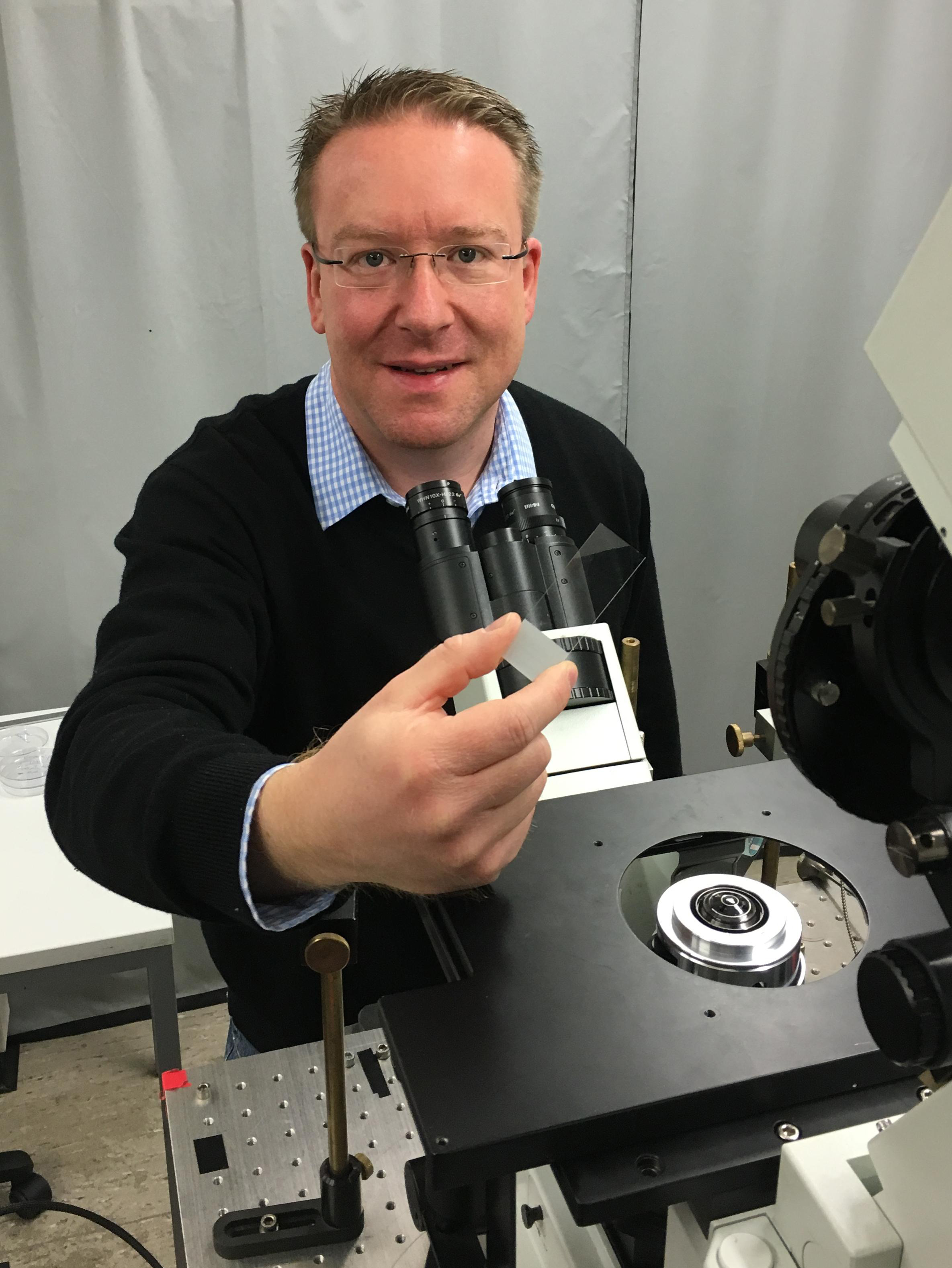 Dr. Mark Schüttpelz entwickelt ein Verfahren für die hochauflösende Mikroskopie. Foto: Universität Bielefeld