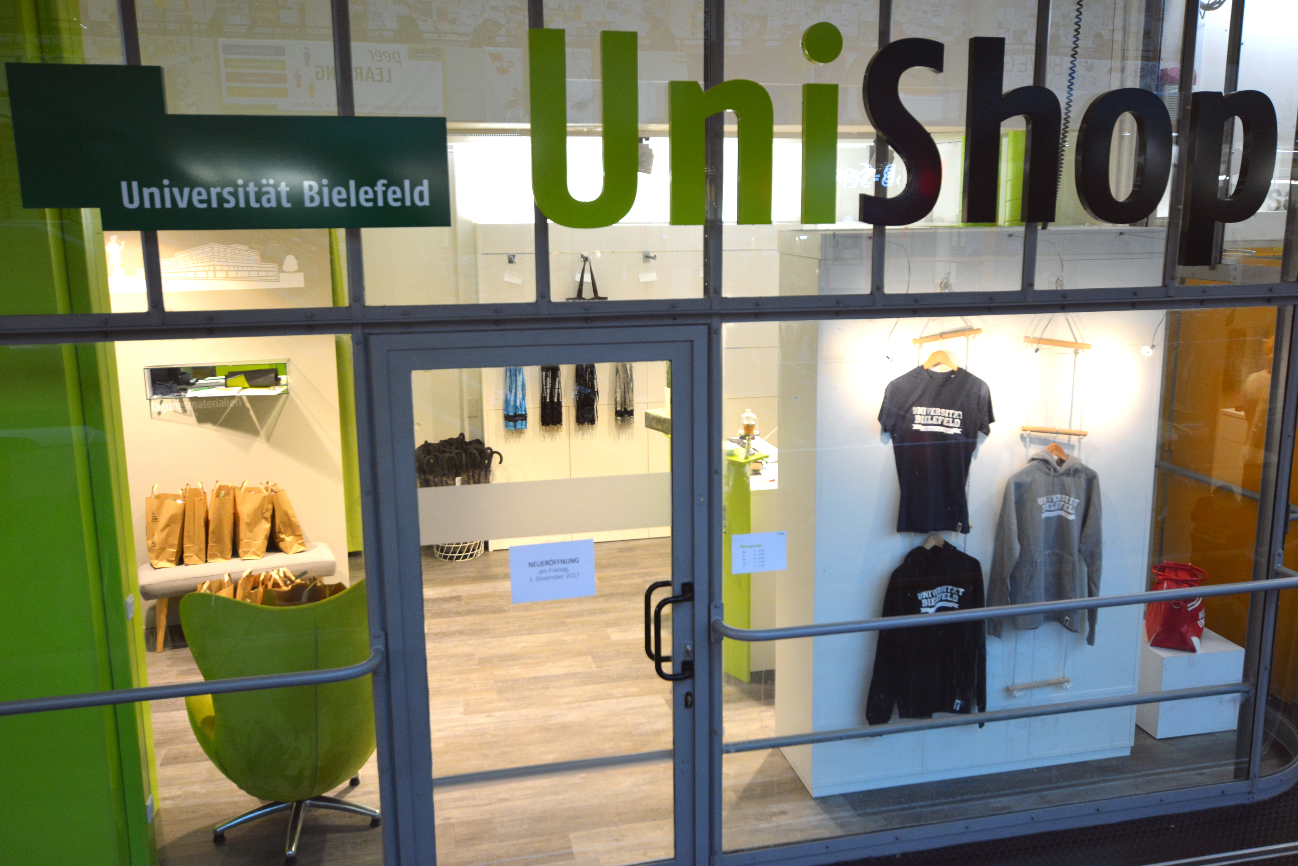 Der neugestaltete UniShop ist jetzt in der ehemaligen Postfiliale zu finden. Foto: Universität Bielefeld