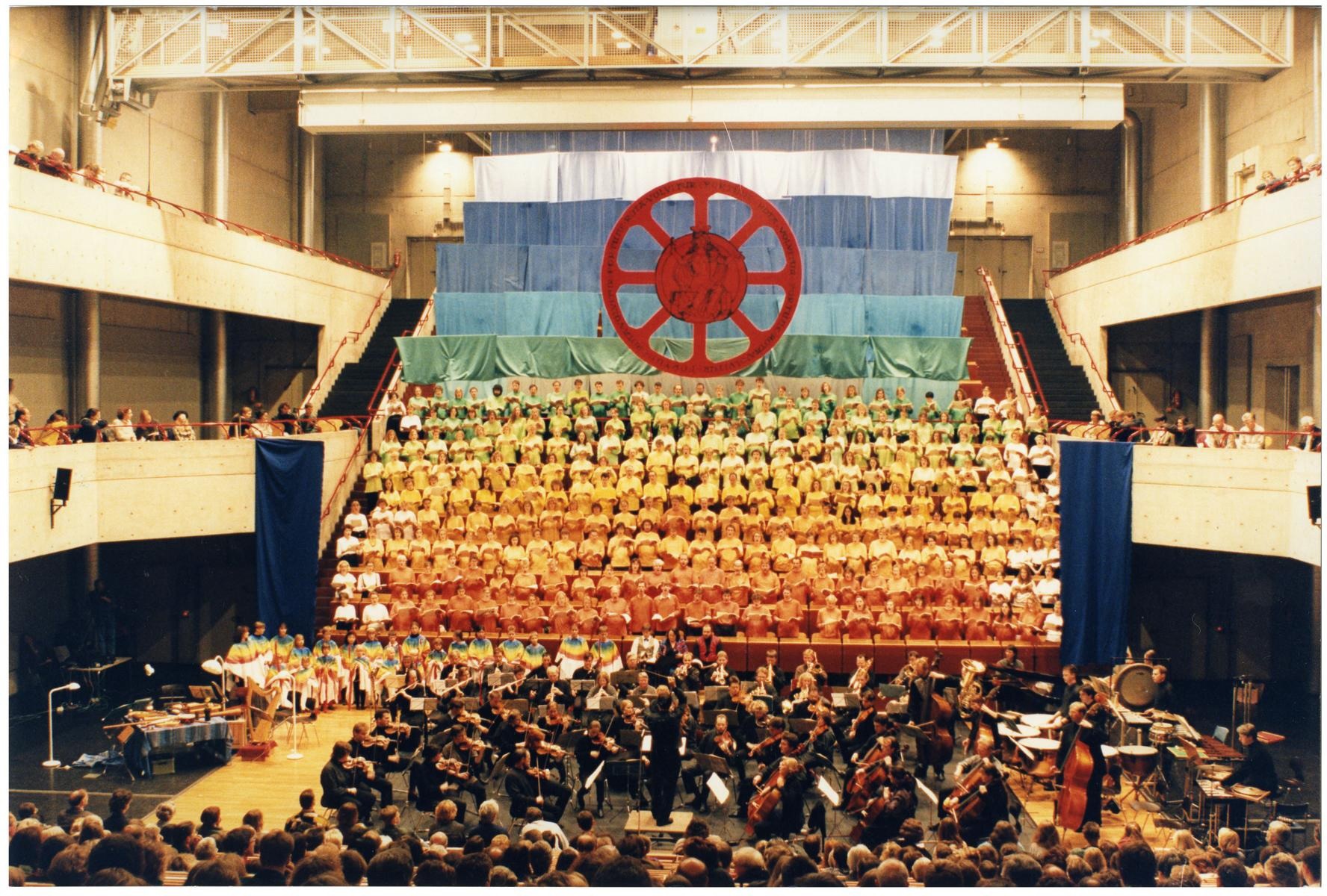 Die Aufführung der Carmina Burana zum 25-jährigen Universitätsjubiläum. Bühnenbild: Peter Sommer vom Fach Kunst.