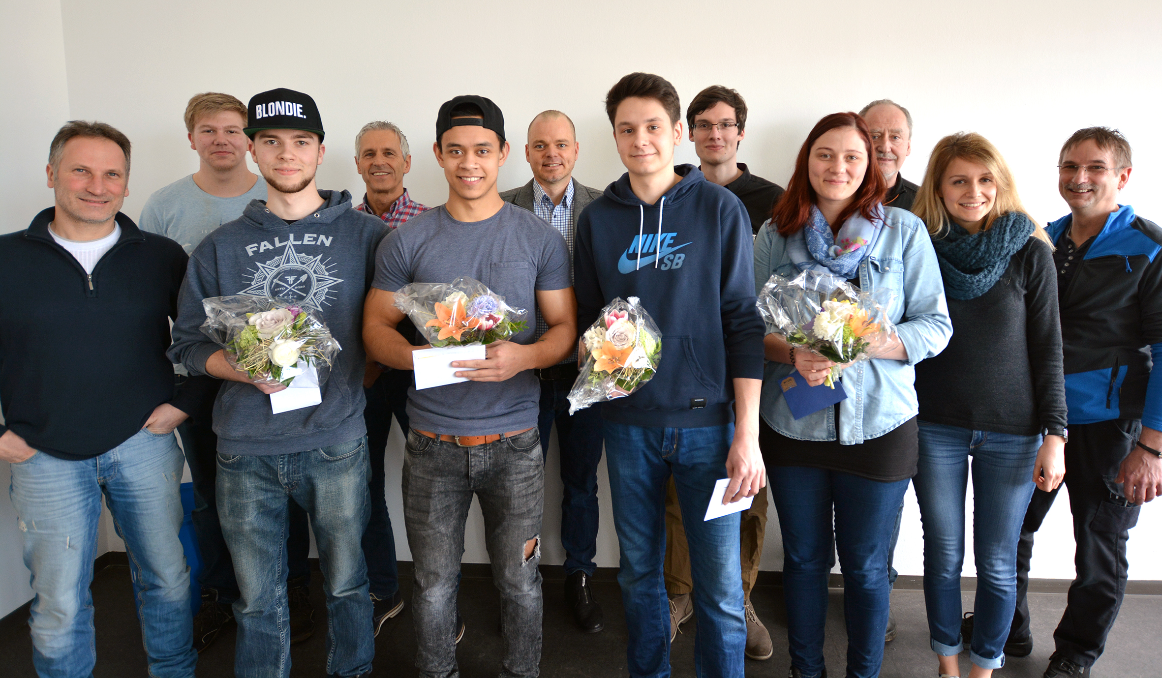 Freuten sich über gelungene Ausbildung (v.l.): Klemens Schmidt (Fakultät für Physik), Jakob Meyer (Jugend- und Auszubildenden-Vertretung), Florian Koch, Manfred Hoffmann (Fakultät für Chemie), Tim Harke, Alexander Steinhäuser, Yannick Schmeichel, Markus Hübner, Gesa True, Siegfried Berger (Fakultät für Bieologie), Agnes Plasa (Hochschulrechenzentrum), Ulf Maskalans (Personalrat.)