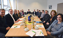 Vertieften die Partnerschaftsgespräche (v.l.): Prof. Dr. Wilfried Raussert (British and American Studies, Universität Bielefeld), Dr. Thomas Lüttenberg (Leiter International Office, Universität Bielefeld), Professorin Dr. Angelika Epple, Dr. Britta Baron (Vice President Internationales University of Alberta, Hochschulrat Universität Bielefeld), Doug Weir, Meghan McKinnie, Prof. Dr. Stefan Jungblut, Dr. Max Corall (beide Universität Paderborn), Stefan Schwan (Leiter International Office Universität Paderborn), Prof. Dr. Jörn Steigerwald (Universität Paderborn), Despina Arnold (Koordinatorin für außereuropäische Hochschulkooperationen, International Office, Universität Bielefeld), Prof. Dr. Christian Schröder (Vizepräsident für Forschung, Entwicklung und Transfer, Fachhochschule Bielefeld), Judith Peltz (Leiterin International Office, Fachhochschule Bielefeld), Kerstin Rosemann (International Office, Hochschule Ostwestfalen-Lippe Lemgo).