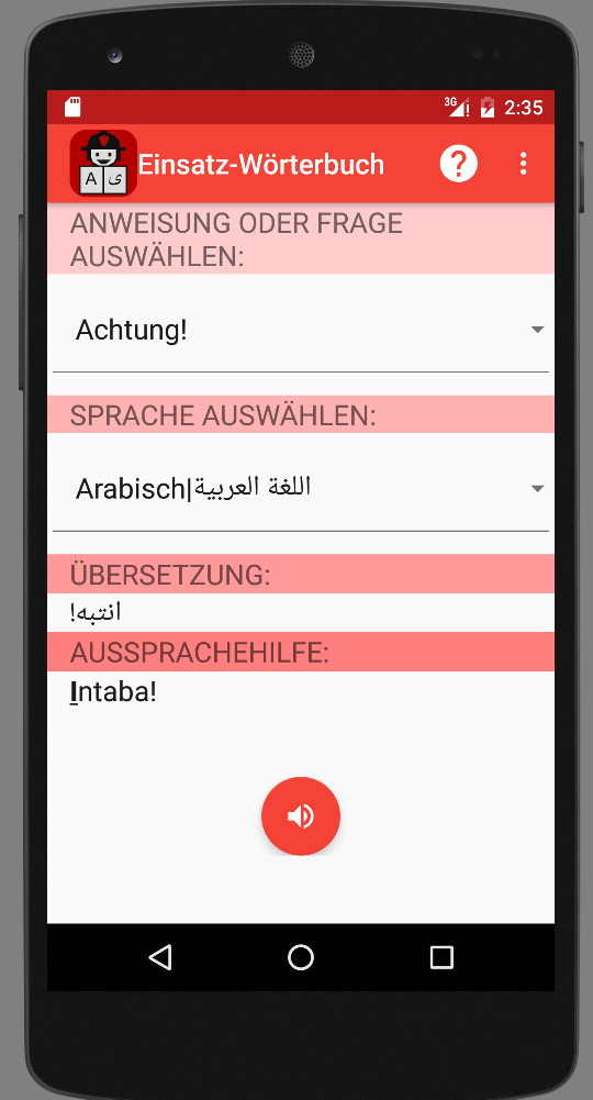 Bild: Die App lässt sich schnell und intuitiv bedienen: Nach der Auswahl von Anweisung/Frage und Sprache erscheinen die ÜbersetzungBildnummer: 109764